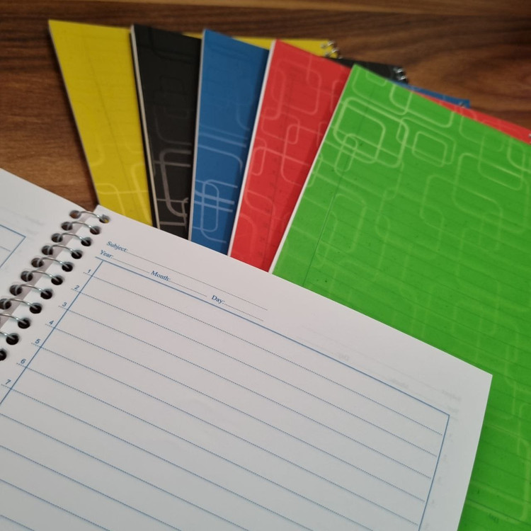 طرح کاشی زیبا و رنگبندی متنوع شامل آبی، مشکی، قرمز، سبز و زرد، امکان انتخاب طبق سلیقه شما را فراهم میکند. سیمکشی محکم دفتر باعث میشود صفحات به راحتی جدا نشوند و استفاده روزمره بدون مشکل انجام شود.