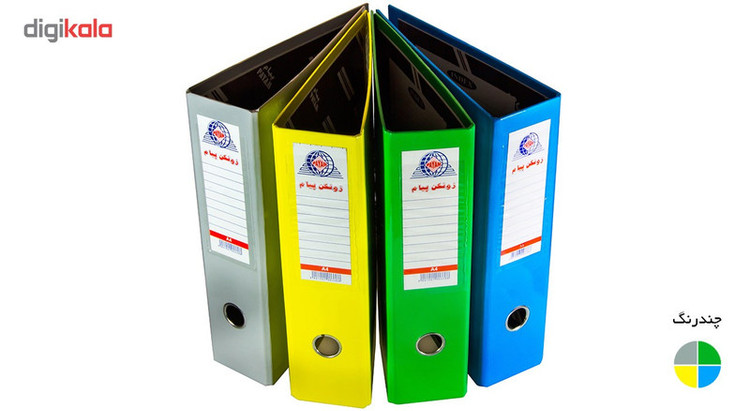- جهت بایگانی و نگهداری اسناد و مدارک - مناسب برای ادارات و وزارتخانهها، شرکتها و سازمانها - دارای جای مخصوص نوشتن لیبل - چهار جلد زونکن پیام - ساخت ایران